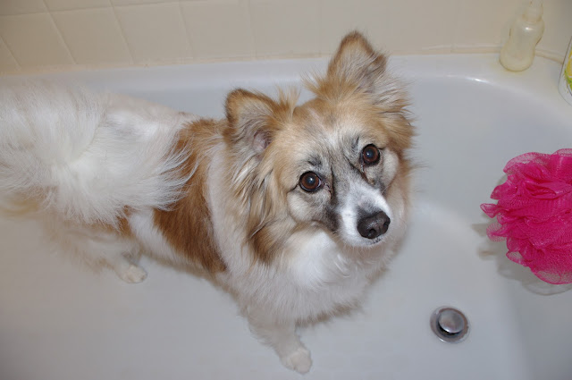 This was the expression on Lilo's face when she realized I wasn't kidding about her need for a bath and I intended to give her one immediately.