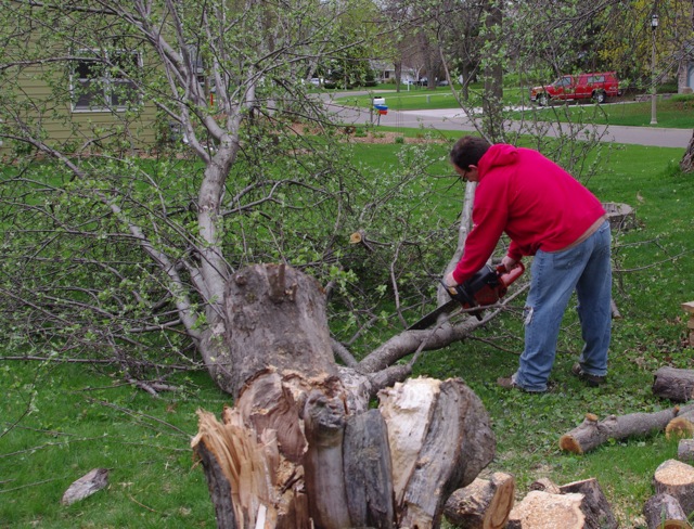 Thank you neighbor with a chainsaw and the desire to use it! With your help we made short work of that big tree.